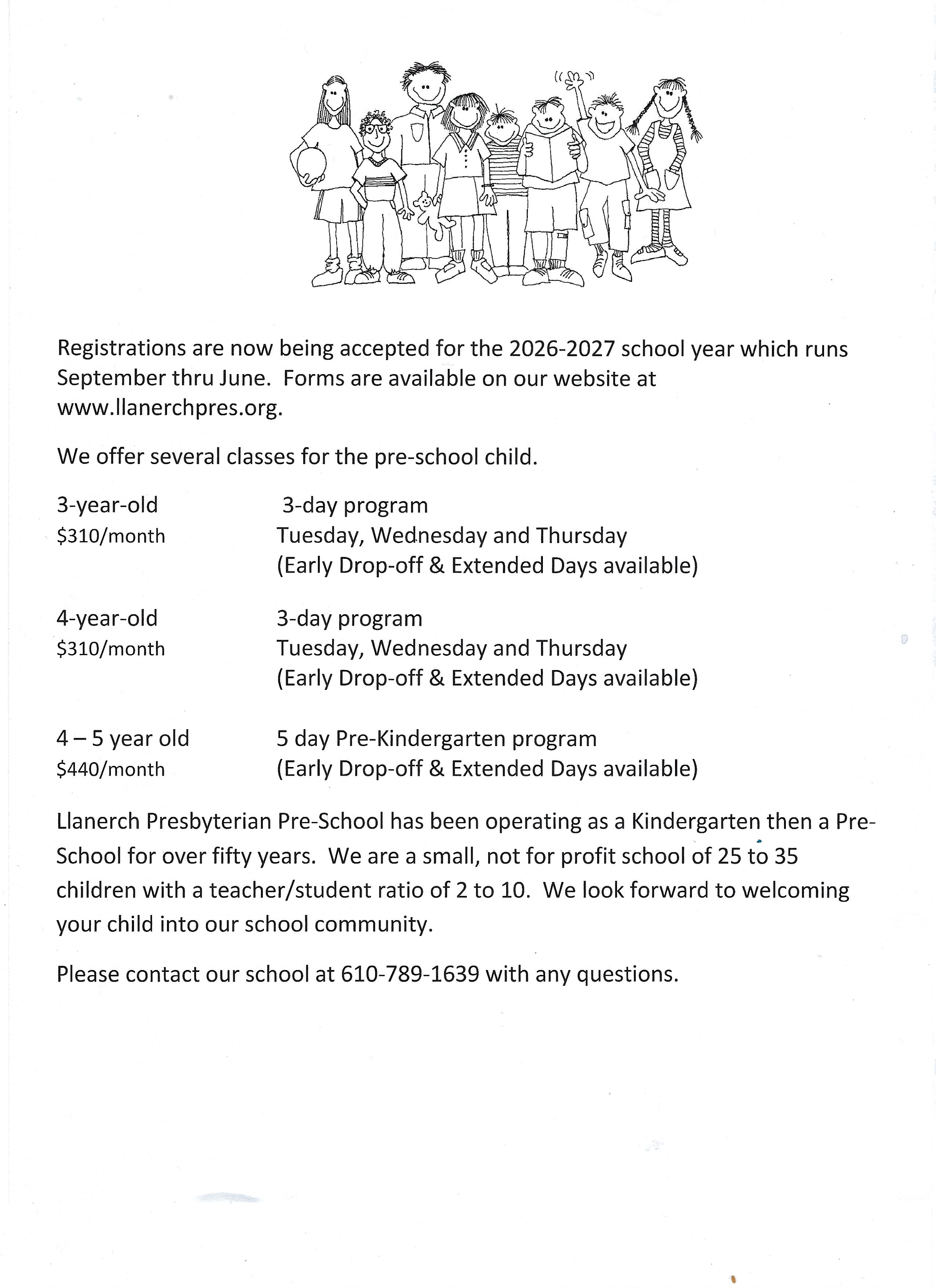The Preschool has been part of Llanerch Presbyterian Church's Mission for over 60 years, serving children and families in Havertown and the surrounding communities. It is a small, not for profit school of 25 to 30 children with a teacher - student ratio of 2 to 10.